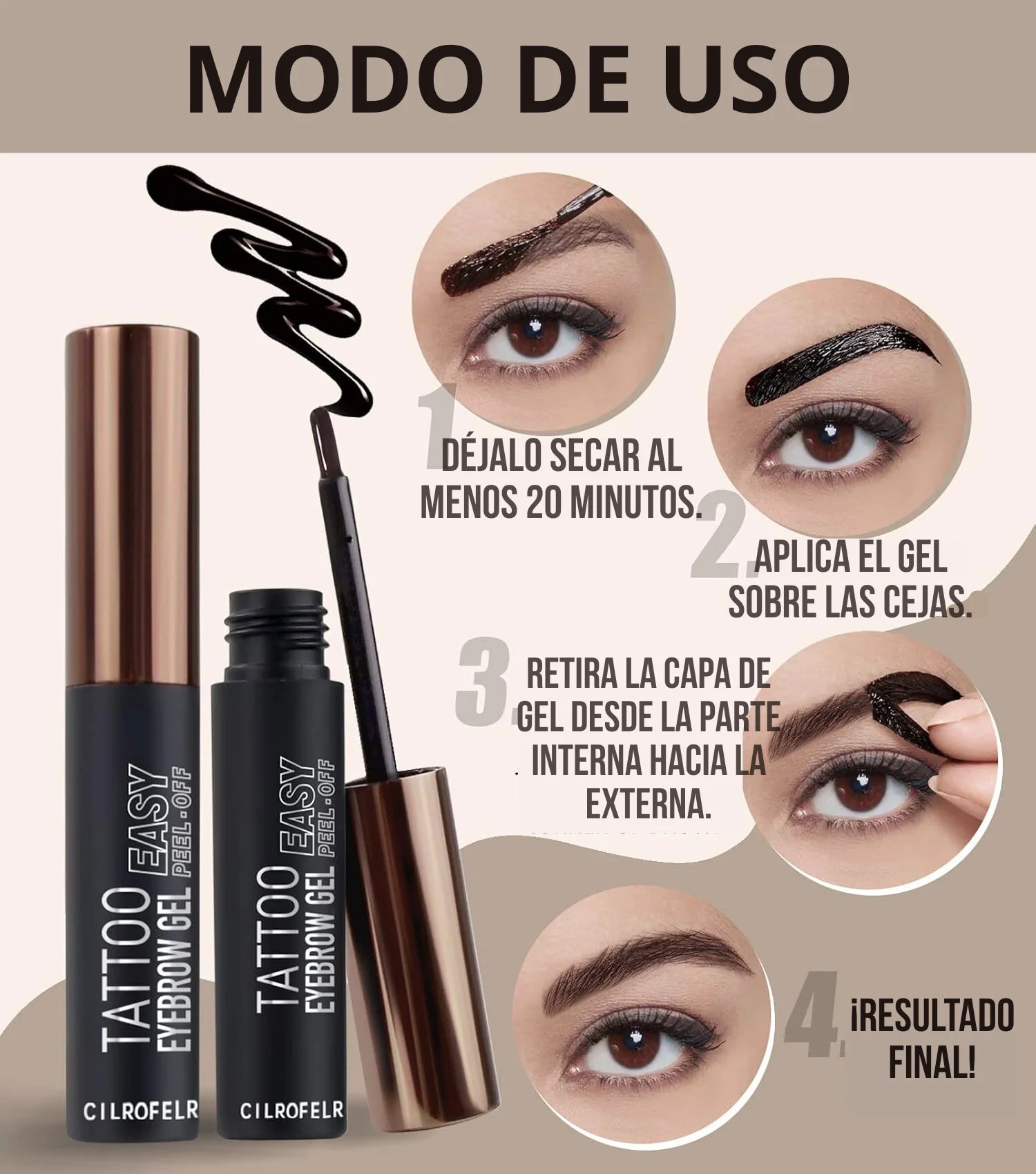 El Gel para Cejas de Cilrofelr crea una capa de pigmento que se adhiere suavemente a la piel y al vello, dejando un efecto natural que dura hasta más de 3 días.